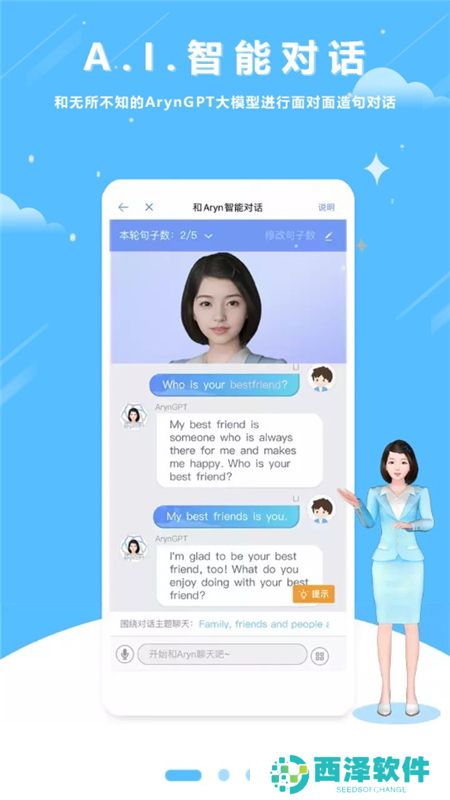 跟随智能口语教练雅琳练习口语,对发音进行评分,