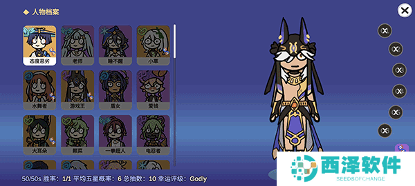 2、同时游戏中的抽奖页面也是按照原神的界面一比一进行还原,为玩家带来了原汁原味的抽卡体验。游戏中的每一个角色都有着属于自己的特色,并且角色更新的速度是跟随着原神游戏中同步进行更新