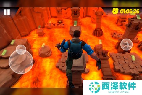 游戏中有滚石、熔岩坑、岩浆喷射等障碍,玩家需要灵活应对,避免碰撞或掉入陷阱。