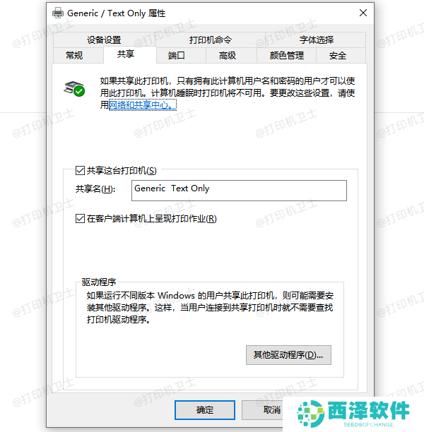 在打印机连接的主机上,打开“控制面板 > 设备和打印机”。右键点击打印机,选择“打印机属性”。在“共享”选项卡中,勾选“共享这台打印机”。
