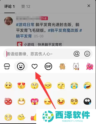 2、进入评论区以后,点击最底部的笑脸,如下图所示。