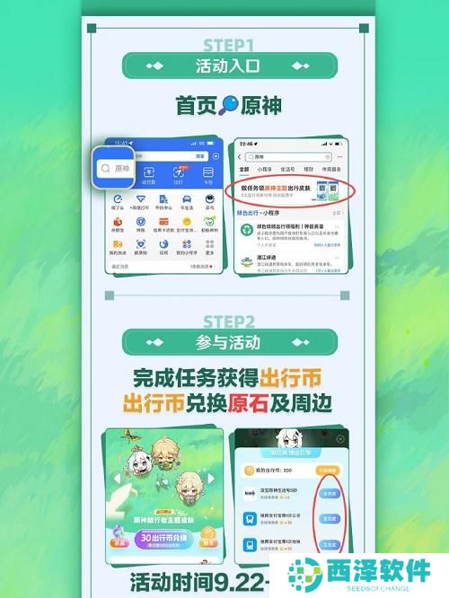 1、支付宝联名原神支付皮肤(消耗30出行币)。