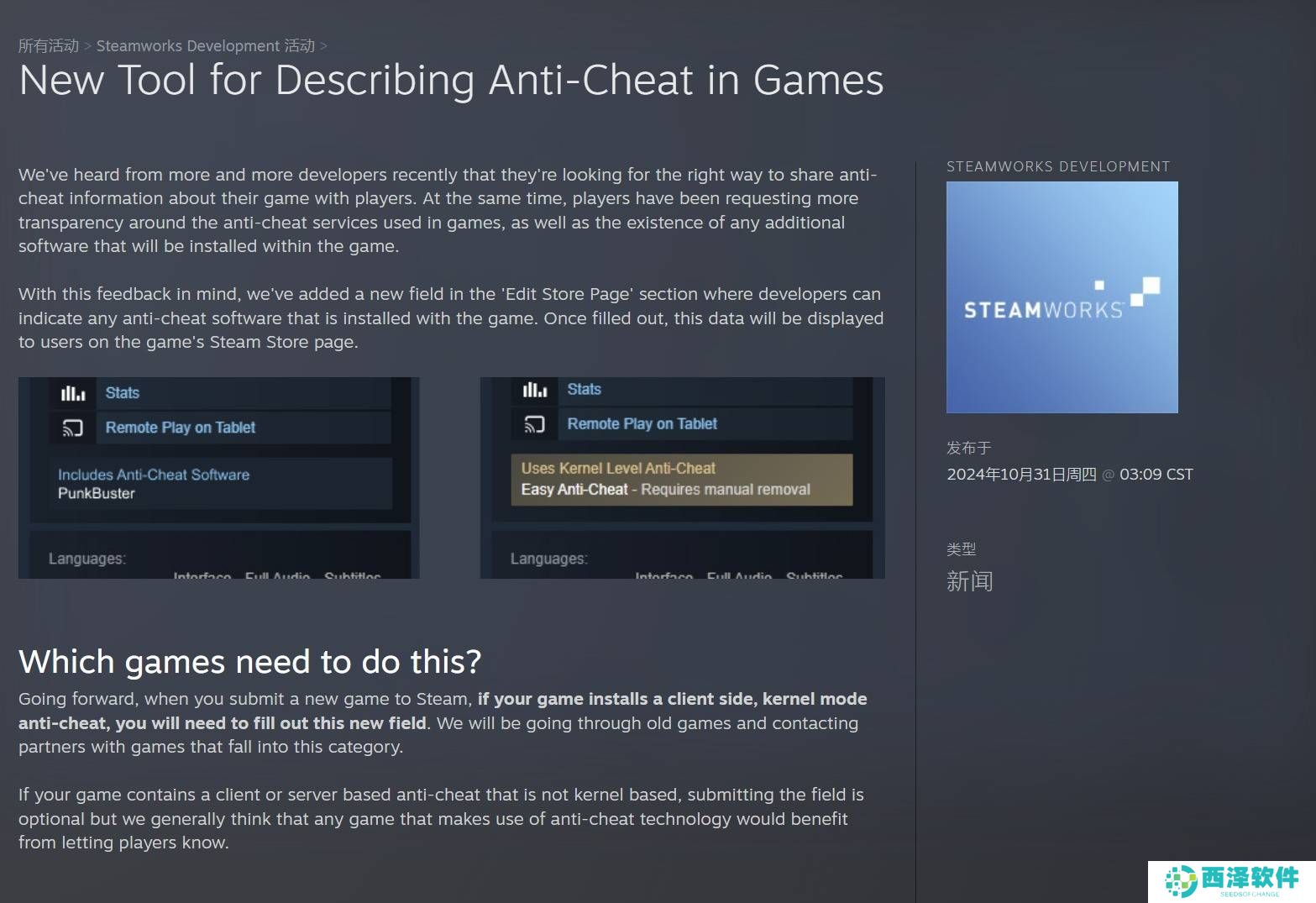 Steam平台近日实施新规,要求游戏发行商明确披露其上架游戏是否运用了内核级反作弊技术。此举旨在提升用户体验及保障信息安全。