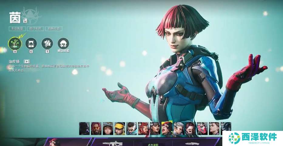 1技能 治疗场:投掷一个生物医疗装置,接触地面后自动激活并持续治疗其中的友方角色。